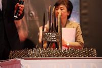 ヒューと川島なお美が“鎧塚氏特製ケーキ”でヒット祈願