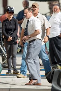 デイリー・メール紙に掲載されている写真を見てみると、グレーのズボンに、半袖のワイシャツとネクタイ姿のマットは笑みを浮かべているが、ジェイソン・ボーンに扮したクールな彼とは大違い。言われなければ、ただの中年太りしたおじさんだ。