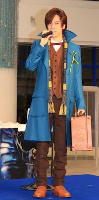 ブルーのコート&マフラーを着てトランクを携えるなど、エディ・レッドメイン演じるニュート・スキャマンダーのコスプレ姿を披露したDAIGO。「気分はDAIGOスキャマンダー」とご満悦の表情で会場の笑いを誘った。