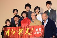 杏が映画初主演を務めた『オケ老人!』の公開記念舞台挨拶が11月12日にTOHOシネマズ新宿で開催され、杏、黒島結菜、坂口健太郎、笹野高史、左とん平、小松政夫、茅島成美、萩原利久、細川徹監督が登壇。細川監督から、天然エピソードを暴露された坂口が照れ笑いを見せた。
