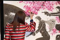 会場にはアーティスト・柏原晋平が描いた襖絵も登場。『スター・ウォーズ』の世界と日本文化が融合したこの絵について、ジョーンズは「もし『ローグ・ワン』の続編が作られるなら日本で撮影したいです。そうすれば、この美しい日本の桜も登場させられますから」と感激の様子だった。