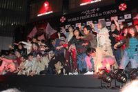会場には映画さながらに500体ものアンデッド(ゾンビ)が出没し、ステージにまで乱入。スモークが焚かれた後で退散すると、その後にミラやミラの娘エヴァ・アンダーソン、ローラ、アリ・ラーター、ウィリアム・レヴィ、オーエン・マッケン、イ・ジュンギ、ポール・W・S・アンダーソン監督が一斉に登場し、会場から歓声が上がった。