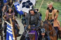 今回到着した写真の中で注目していただきたいのは、町娘風の着物に身を包んだ綾瀬と、信長役を演じた堤真一の手つなぎ写真。戦国時代に馴染むため、着物に衣装替えした繭子が、天真爛漫に信長の手を引いて遊びに誘う場面だ。人懐っこくて優しい繭子に扮する綾瀬の、華やかで柔らかな雰囲気の着物姿には思わず魅了されてしまう。
