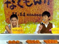 阿部サダヲ、瑛太、竹内結子競演のコメディ『なくもんか』(11月14日公開)が完成。キャストと脚本を務めた宮藤官九郎らが顔を揃え、東京・六本木で記者会見を行い、阿部サダヲが竹内結子の衝撃的な“股間キック”のエピソードを暴露した。