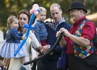カードは、昨年10月にシャーロット王女にとって外交デビューとなったカナダ公式訪問の際の家族4人を捉えた写真を使用したもので、ウィリアム王子に抱かれたジョージ王子とキャサリン妃に抱かれたシャーロット王女が、バルーンアートをつくる職人の芸に見入っている写真だ。