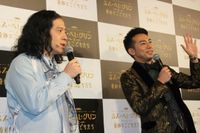 ピースの2人はバートン監督の大ファンで、2014年に行われた「ティム・バートンの世界展」でもオフィシャルサポーターを務め、バートン監督とも対面している。気合十分の衣装をまとった又吉は「バートン監督に靴をほめてもらいました」と上機嫌だ。