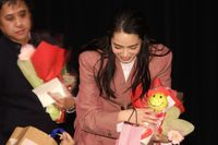 第38回ヨコハマ映画祭の授賞式が、2月5日に関内ホールで開催され、三浦友和、柳楽優弥、筒井真理子、杉咲花ら豪華ゲスト陣が舞台挨拶に登壇した。最優秀新人賞に輝いたのは『淵に立つ』(公開中)の太賀、『ディストラクション・ベイビーズ』の小松菜奈、村上虹郎の3人だが、小松はドレスではなくサーモンピンクのボーイッシュなパンツスーツで登壇し、会場をどよめかせた。ファッションについて小松は「ちょっとメンズっぽく」と微笑んだ。