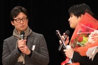 柳楽は言葉を詰まらせながらも力強くスピーチ。「『誰も知らない』で受賞した時は、たしか海外で映画を撮影していて来れなかったんです。それから悩んだりいろいろなことがあったりしましたが、12年経って、またここに立てて本当にうれしいです。とても名誉ある賞だと思っているので、押しつぶされないように筋トレを頑張って、負けないメンタルと演技力をつけて、役者バカになりたいなと思いました」。